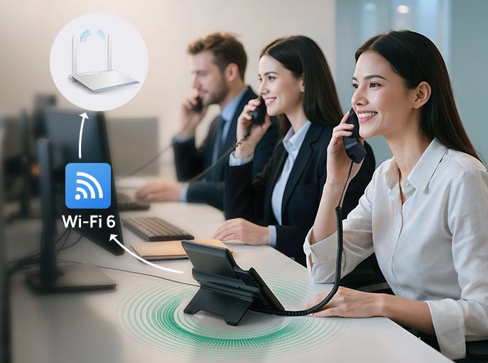 SIP-T73W profesjonalny telefon IP serii T7 z Wi-Fi oraz Bluetooth to nowoczesny telefon biurkowy klasy biznes, łączący wygodę pracy bez kabli, wysoką jakość audio i rozbudowane funkcje bezpieczeństwa. Zaprojektowany z myślą o nowoczesnych biurach, zapewnia stabilną komunikację oraz szerokie możliwości rozbudowy.